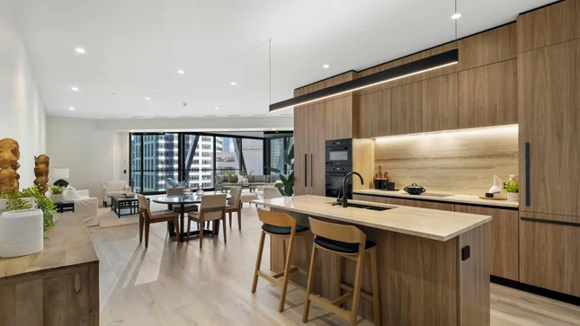 The International is located on one of the central city’s finest streets, surrounded by century-old parks and trees. There are panoramic views from every corner, generous living spaces and high-level security.